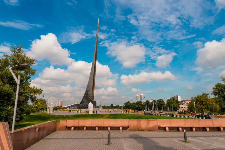 We'll begin our tour next to the Monument to the Conquerors of Space. This gigantic monument, over 100 m (328 ft) tall and topped by a rocket, was erected in 1964 to pay tribute to the successes of the Soviet space programme. The monolith also serves as the main entrance to the Moscow Museum of Cosmonautics.